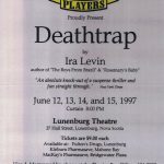 Deathtrap 1997 By: Ira Levin Venue: Lunenburg Theatre, Lunenburg, Nova Scotia Dates: Jun 12-15, 1997 Skills Posted on June 1, 1997 ← Jitters Cinderella – A Pantomime →
